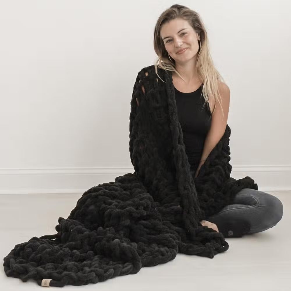Our Infinite Love Chunky Knit blanket has been a fan favorite from day one! Our new, ultra-thick minky chenille yarn elevates them to a higher level of sumptuous softness and luxury. Light, airy and oh-so wow. Relaxed knitting makes them silky smooth and cozy.